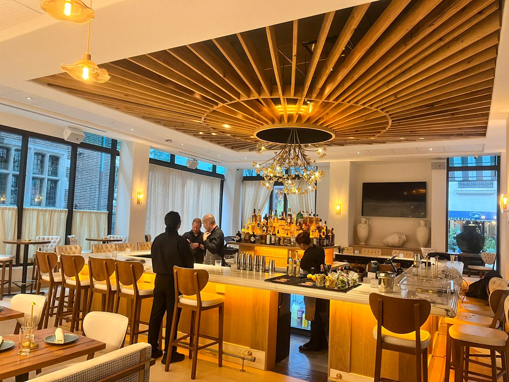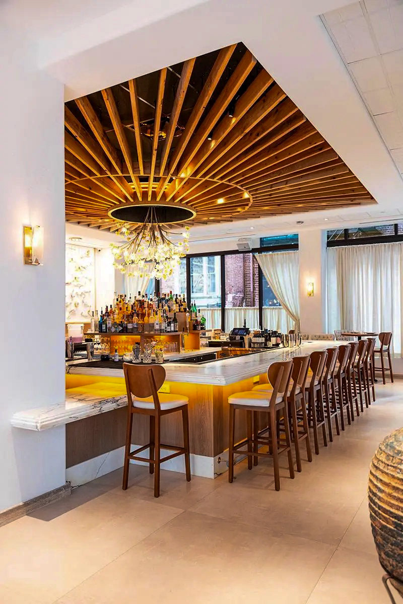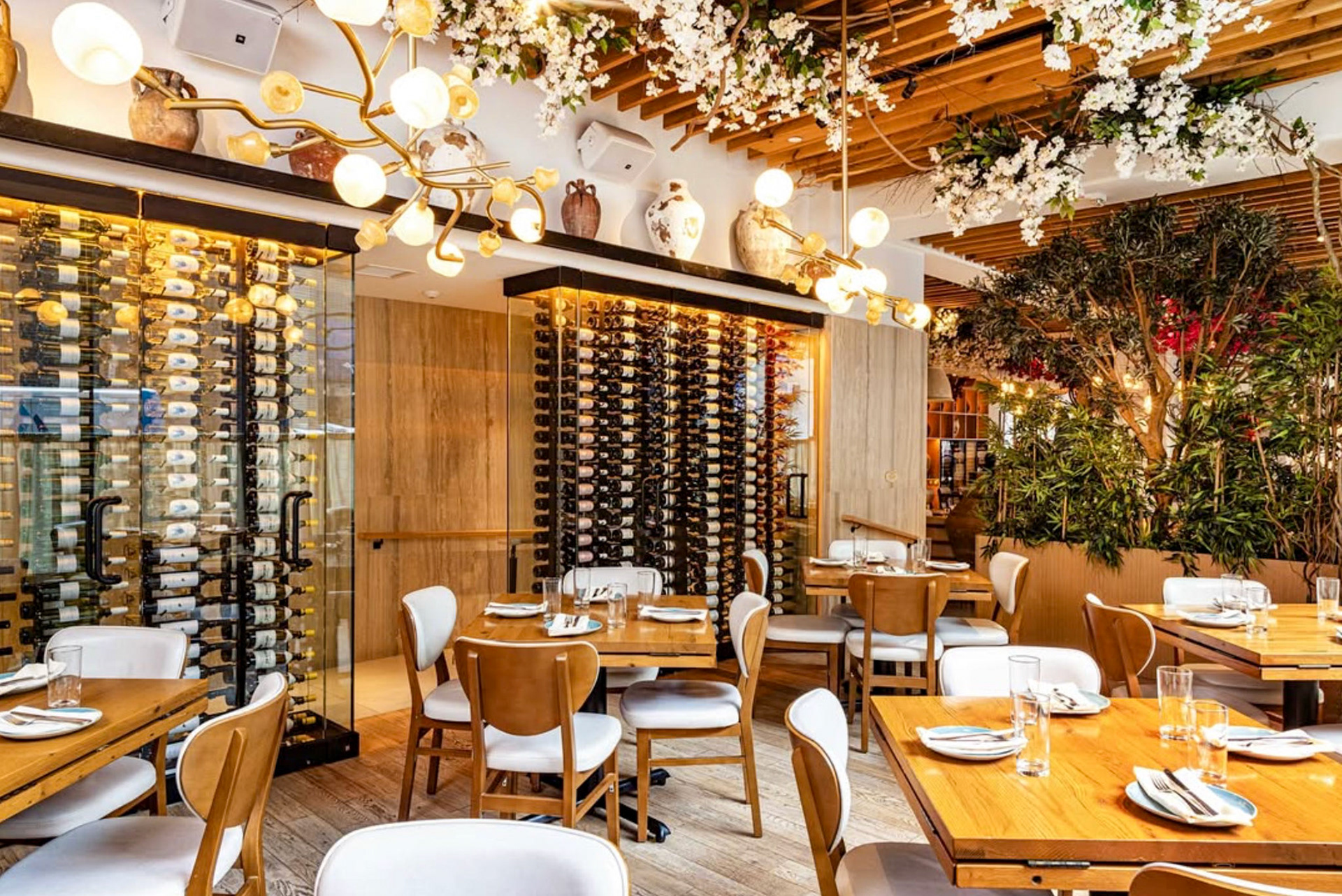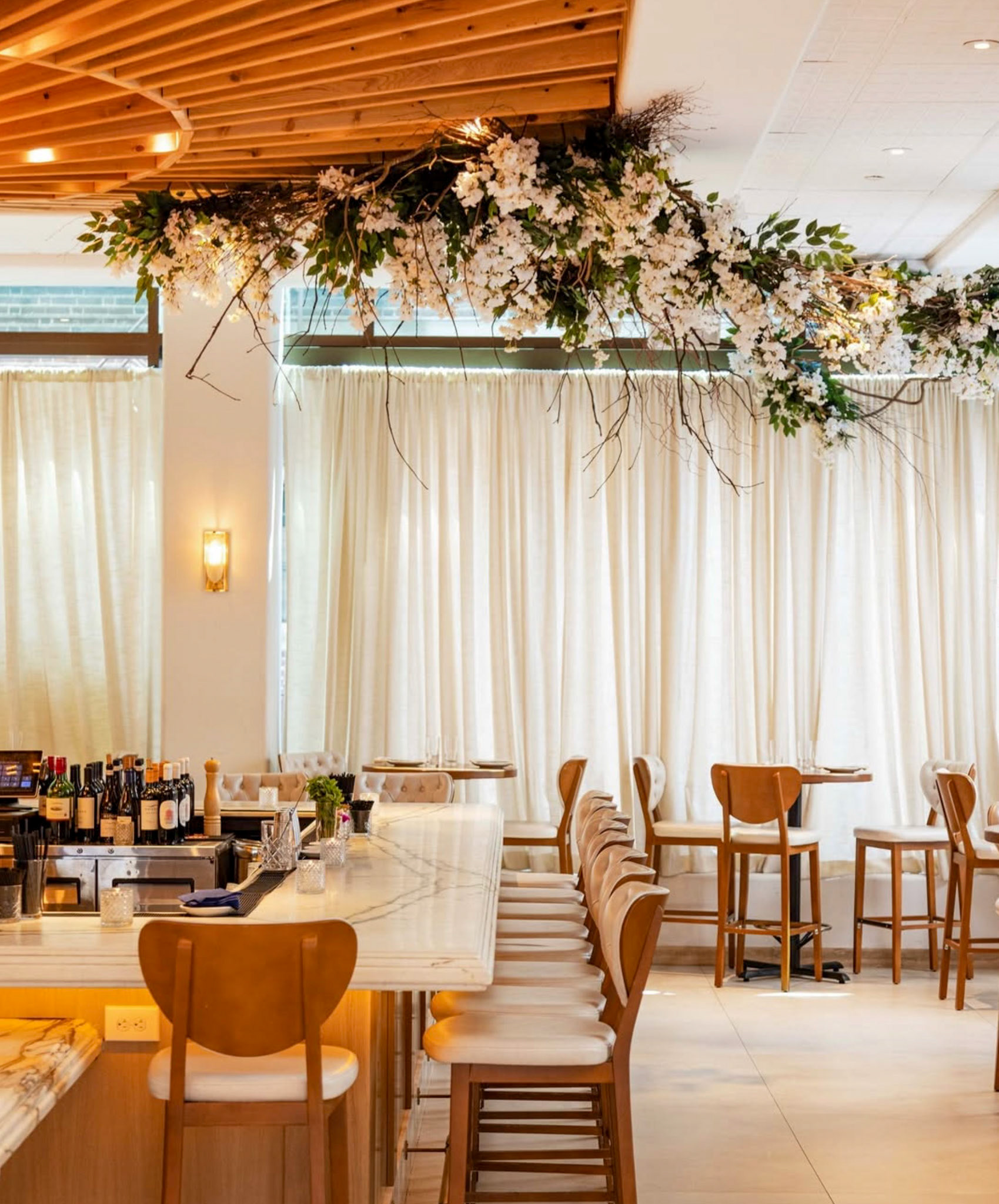 Almyra is a modern Mediterranean restaurant in Philadelphia designed by CHD Interior Design, blending natural materials, handcrafted elements, and lush floral installations into an elegant, transportive dining experience. Anchored by a sculptural radial wood ceiling, a glowing marble bar, and a glass-enclosed wine room, the interior evokes the atmosphere of a contemporary coastal retreat. Bougainvillea canopies, organic textures, and custom lighting enrich the space with warmth and vibrancy, creating an immersive environment rooted in Mediterranean aesthetics. Almyra reflects CHD’s signature approach to hospitality design: refined, sensory, and meticulously detailed to elevate both brand identity and guest experience.