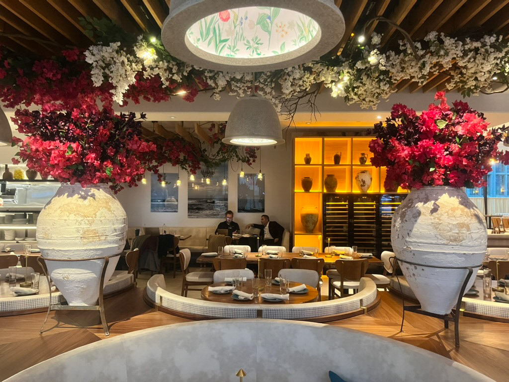 Almyra is conceived as a contemporary homage to the Mediterranean—an atmosphere where texture, light, and nature converge to create an immersive dining environment.