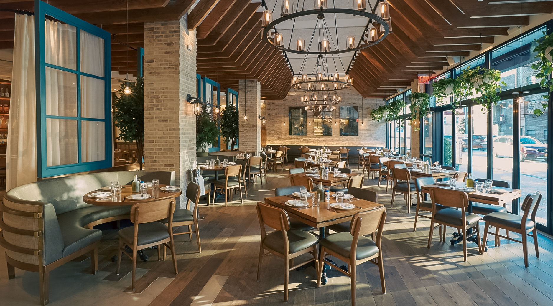 Anassa Taverna Astoria is a modern Greek restaurant design that blends rustic Mediterranean charm with contemporary architectural details. Featuring exposed timber beams, warm brick walls, blue-framed interior windows, elegant lighting, and a sculptural bar, the space creates an elevated dining experience rooted in Greek hospitality. This project showcases CHD Interior Design’s expertise in restaurant interiors, Mediterranean concepts, and refined, hospitality-driven environments.
