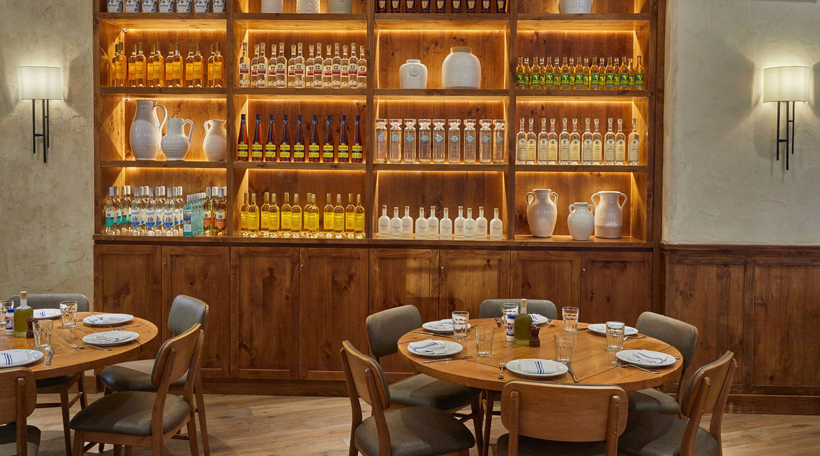 Anassa Taverna Astoria brings a modern interpretation of the Greek taverna to New York, blending rustic Mediterranean warmth with refined architectural detailing.