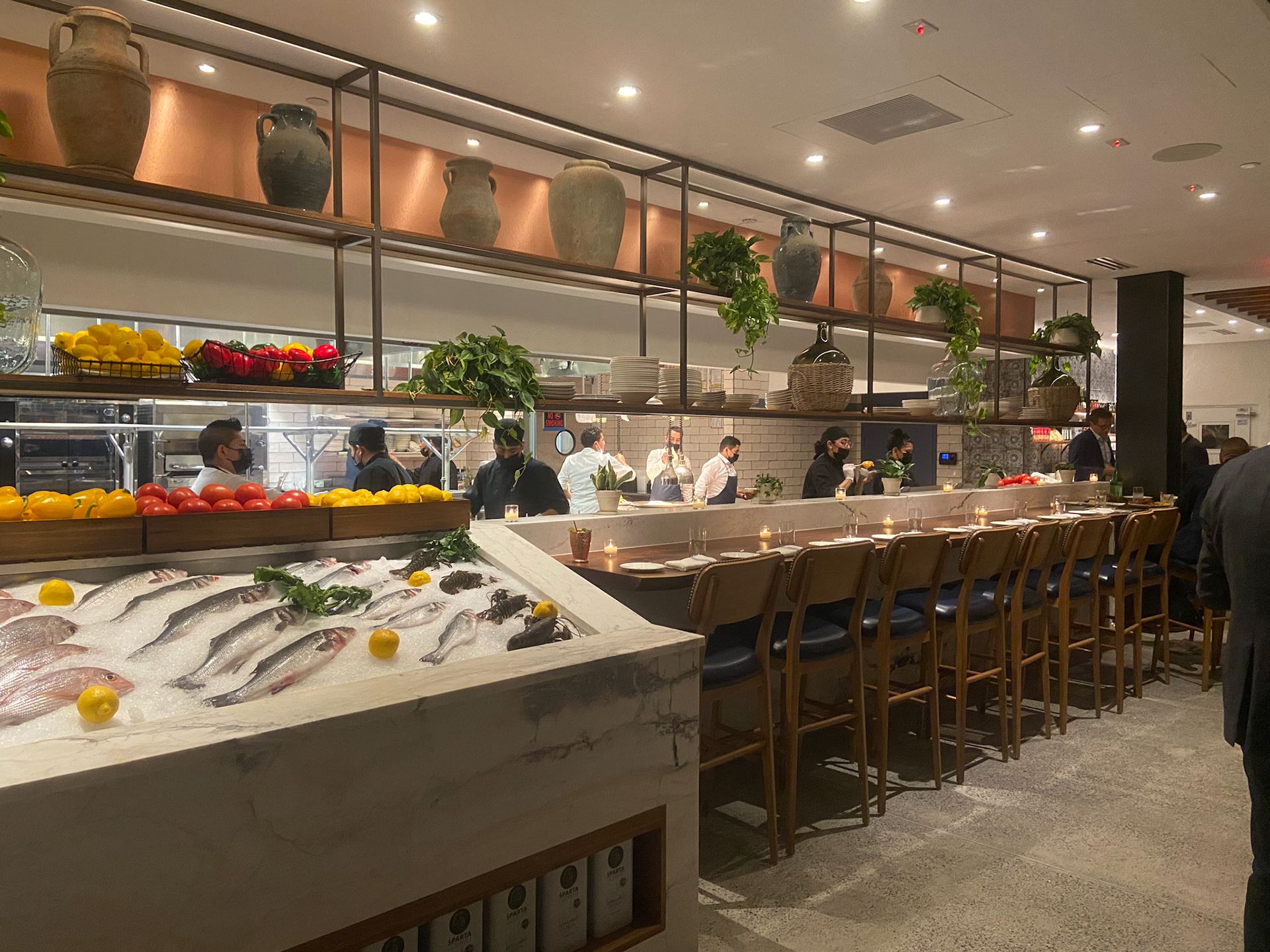 A vibrant seafood display—set within a custom-carved marble basin—becomes a focal moment of freshness and theater. It reinforces the restaurant’s devotion to the sea, pairing the elemental beauty of marble with the glistening textures of ice, citrus, and daily catch.