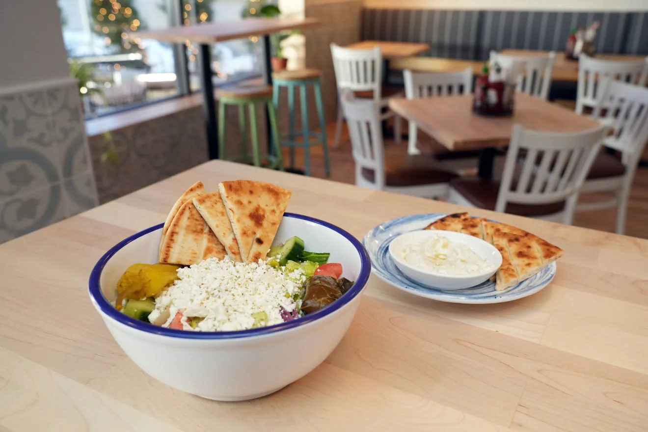Pita Greek is a bright, welcoming fast-casual concept that channels the warmth and simplicity of everyday Greek living. The design captures the charm of a neighborhood taverna through natural materials, hand-crafted details, and a palette of sun-washed neutrals and Aegean blues. The space emphasizes freshness, clarity, and ease—echoing the restaurant’s simple, honest approach to Greek street food.
