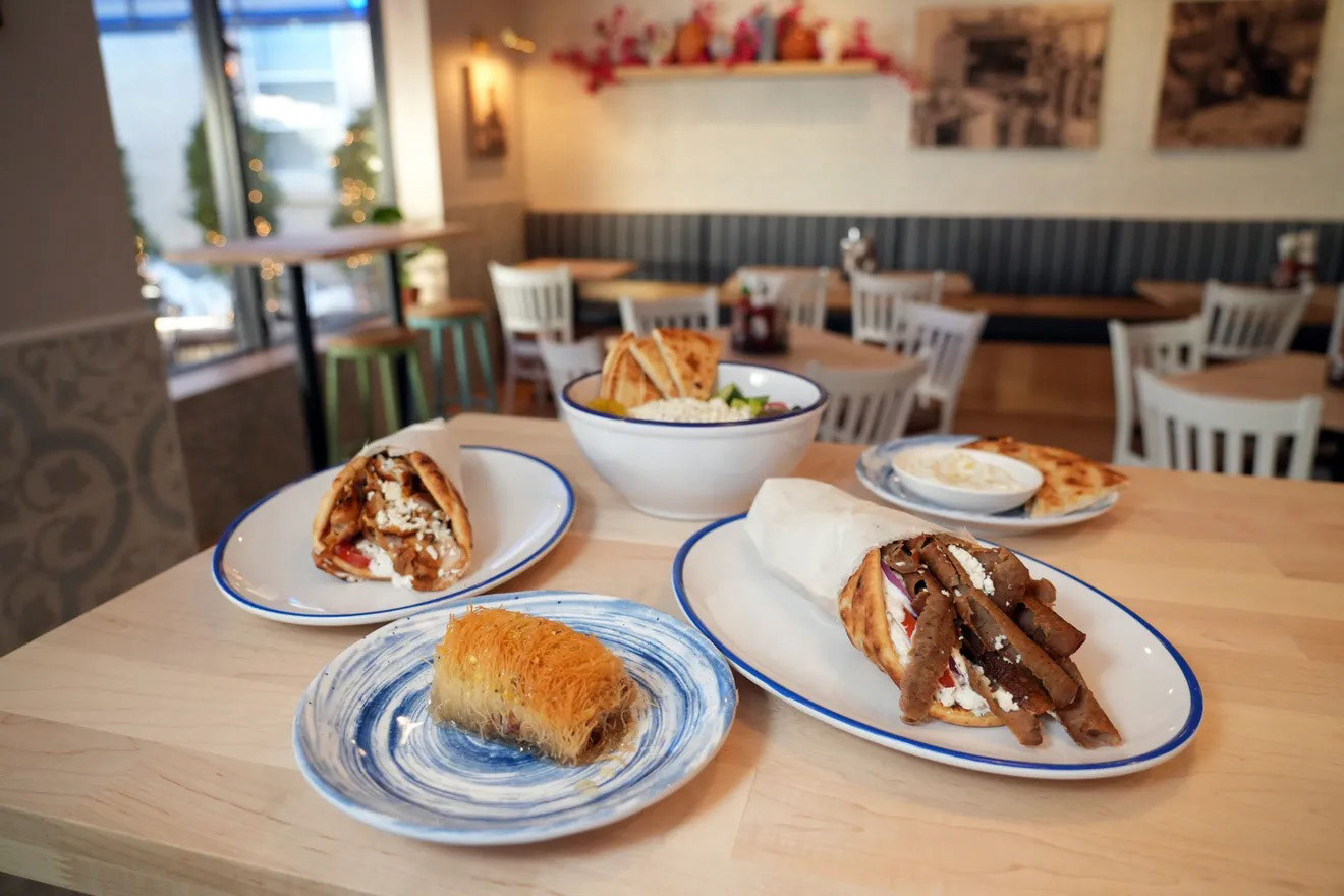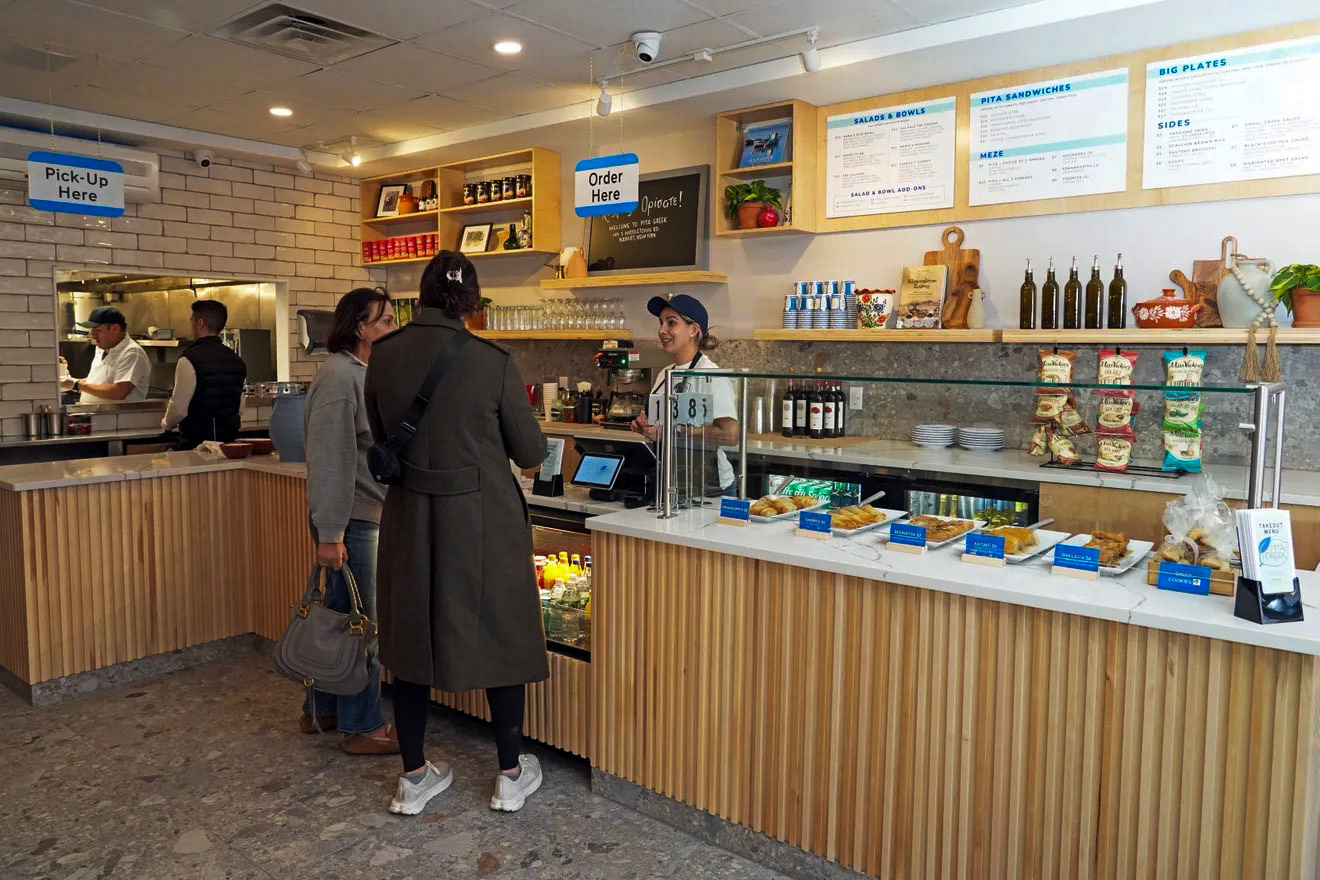 Pita Greek is a bright, fresh fast-casual restaurant inspired by the simplicity and warmth of everyday Greek living. Natural wood, white brick, blue-striped banquettes, and market-style shelving create an inviting taverna atmosphere, while vintage Greek photographs and playful accents add cultural charm. The design balances efficiency and comfort, offering a friendly neighborhood spot to enjoy classic Greek flavors with a modern, airy feel.