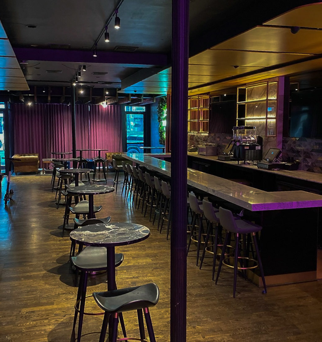 Vybz Astoria is designed as an immersive nightlife destination—an intimate blend of lounge, bar, and club culture where lighting, texture, and rhythm shape the mood. The interior is crafted to pull guests into a world of saturated color, velvet softness, and sculptural light, creating an atmosphere that transforms seamlessly from early-evening cocktails to late-night energy.